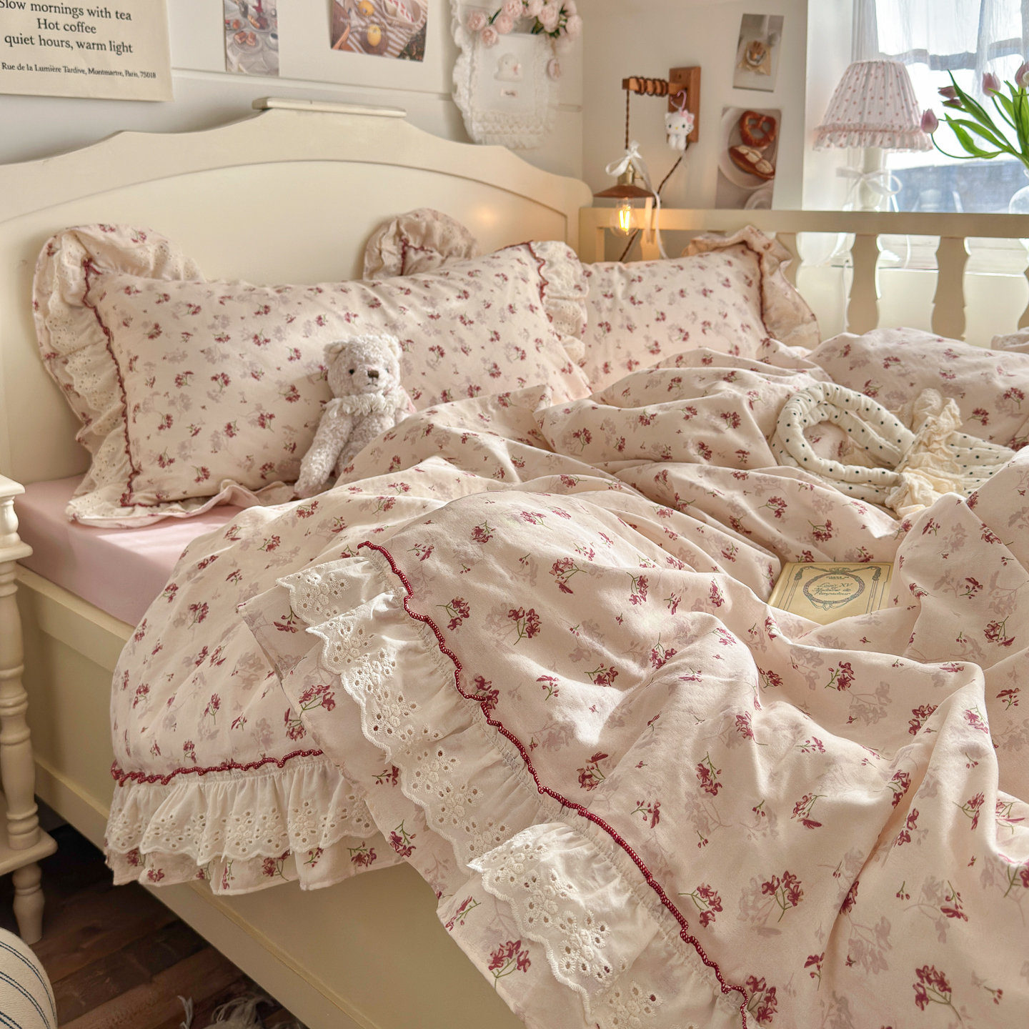 2026新款A类仿棉四件套古法水洗棉法式工艺花边套件(提供买家秀) 1.2m床单款三件套被套150*200 硕果盈盈