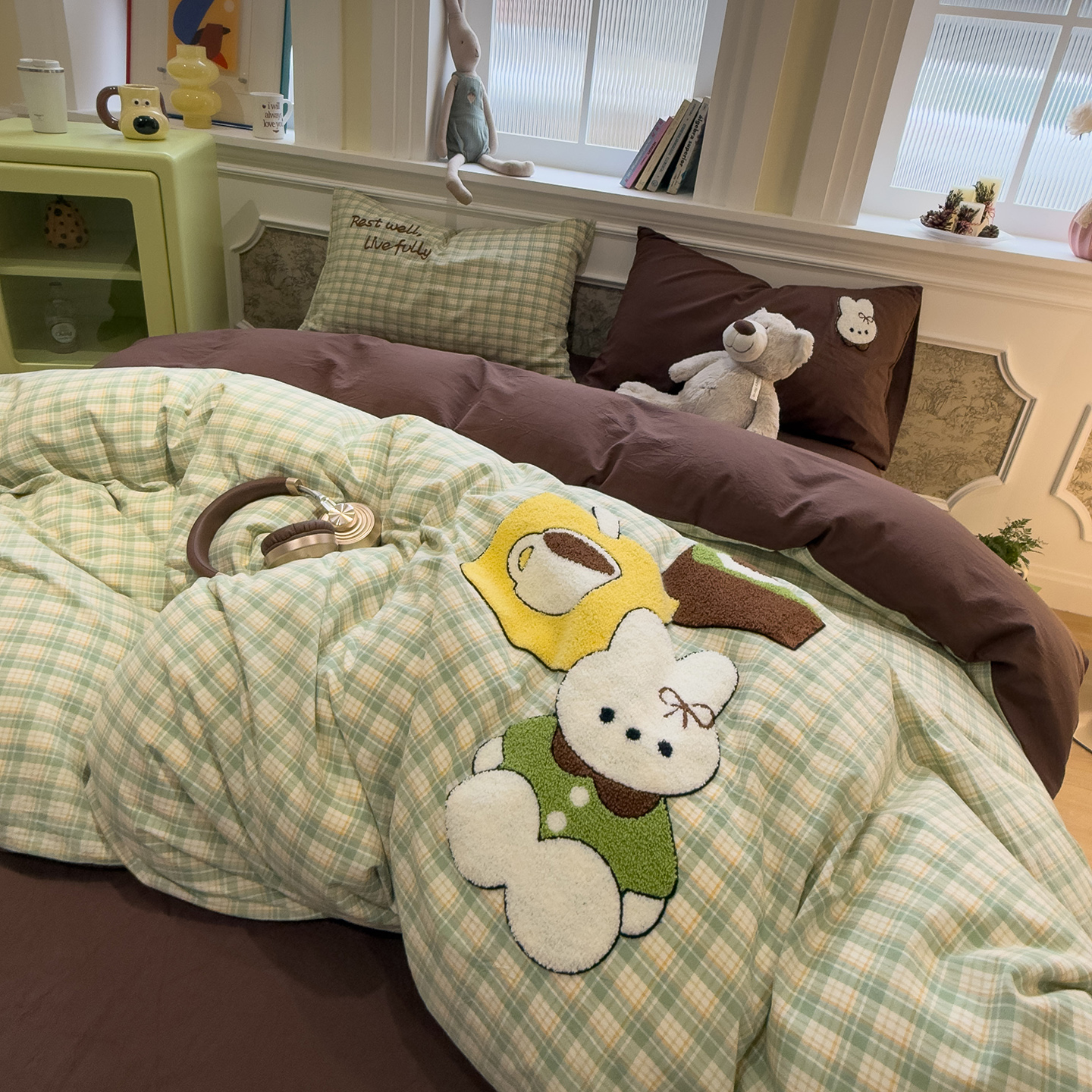 A类高克重加厚保暖牛奶绒毛巾绣卡通四件套