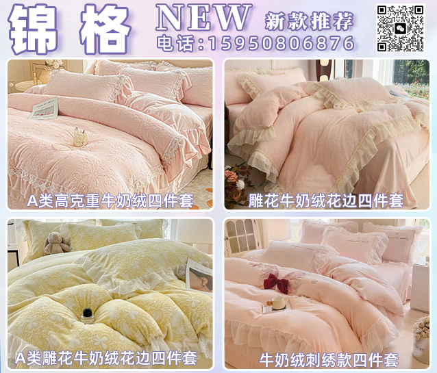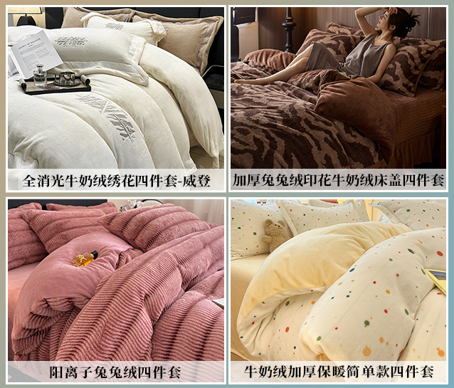 高克重牛奶绒刺绣四件套