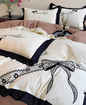 牛奶绒绣花蝴蝶结花边款四件套
