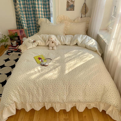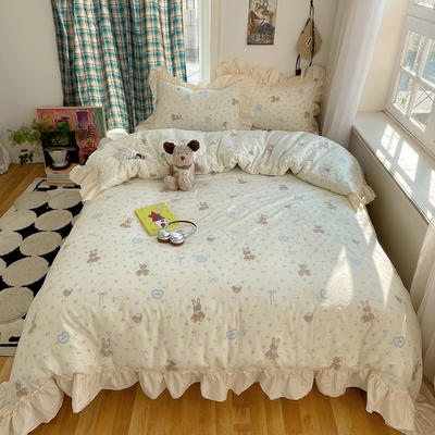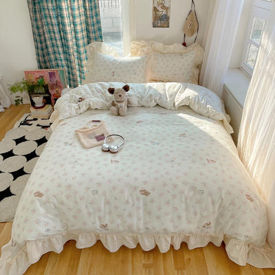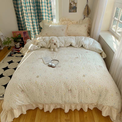 - 2026新款全棉印花韩系大花边系列四件套 爱心花边兔