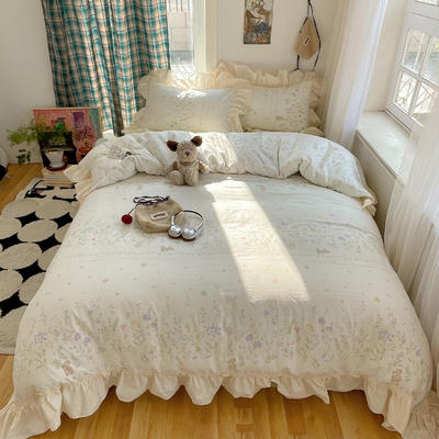 - 2026新款全棉印花韩系大花边系列四件套 花枝兔