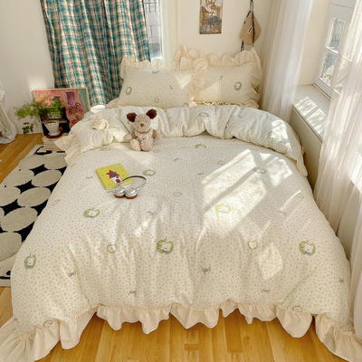 - 2026新款全棉印花韩系大花边系列四件套 苹果小熊