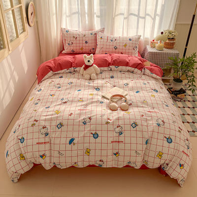 - 2026新款春夏正版三丽鸥全棉印花四件套系列 红格KT