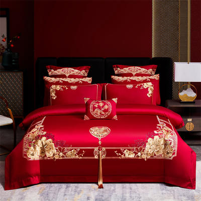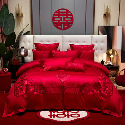 - 2026新款新中式婚庆全棉刺绣多件套 喜来多-红
