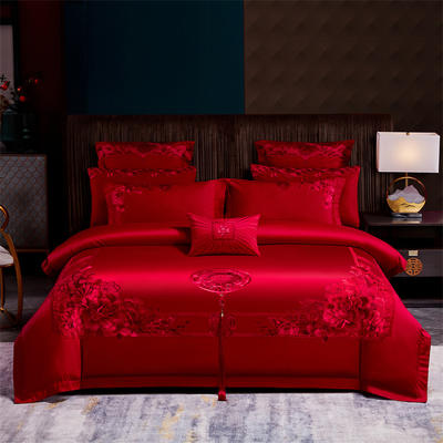 - 2026新款小红书热卖款仿丝棉提花时尚婚庆系列四件套多件套 贵族盛典-红