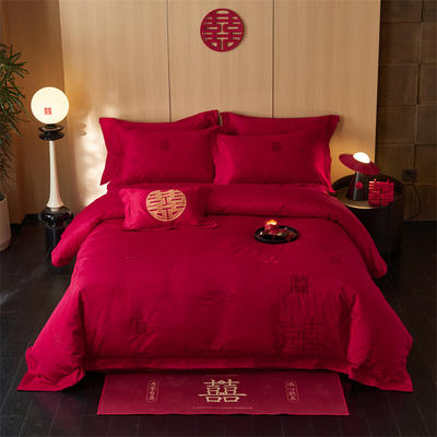 - 2026新款小红书热卖款仿丝棉提花时尚婚庆系列四件套多件套 禧妆