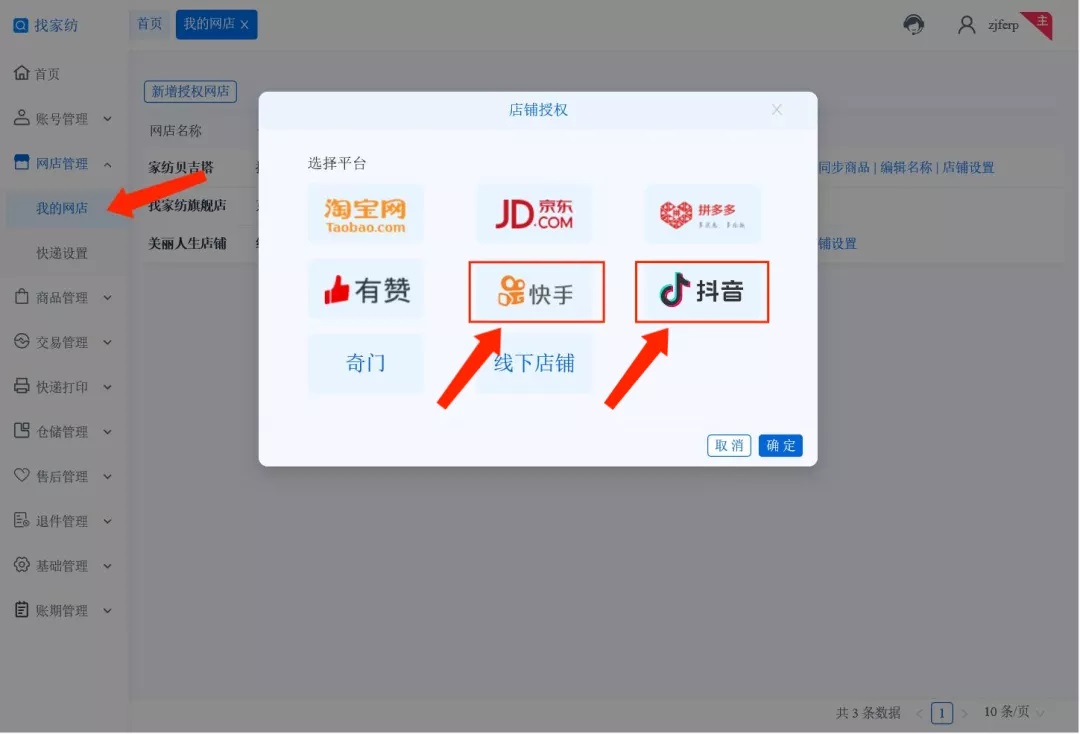 为解决商家库存积压风险和占用库房费用,找家纺代发支持快手、抖音店铺订单自动导入啦,目前这项功能已经上线!前端直播,后台实时快速处理订单,解决手工下单、表格导单的繁琐步骤,刚入门的小白也可以开自己的快手或抖音小店!