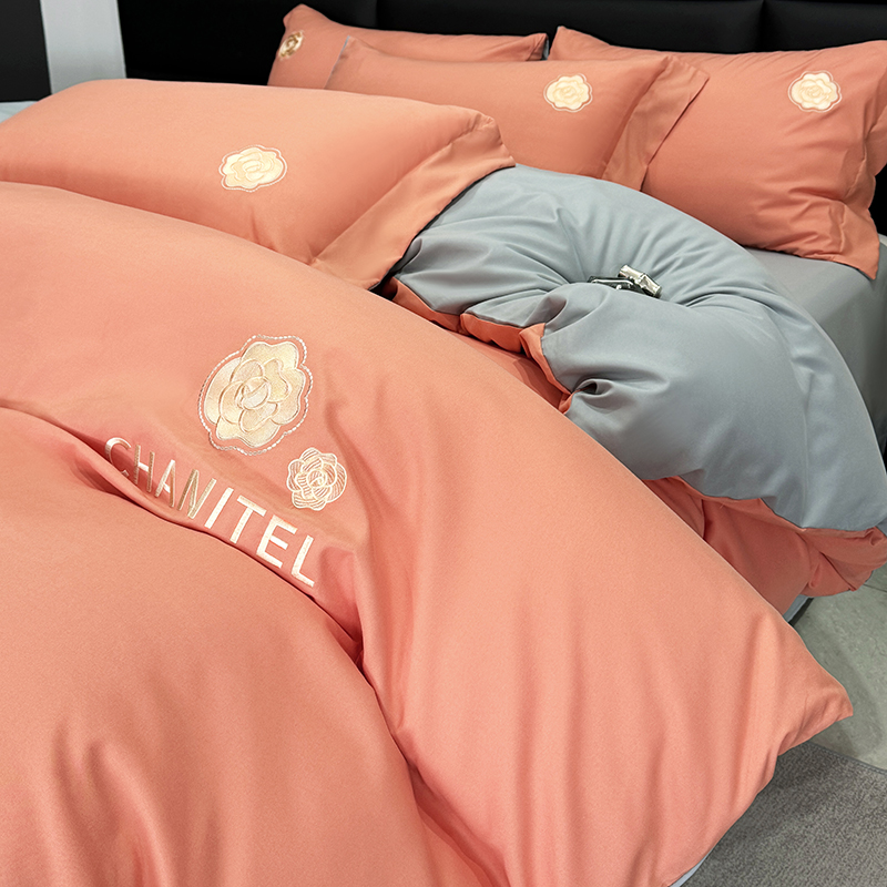 2025新款加厚天丝棉磨毛款绣花工艺四件套 1.5m床单四件套 威尼斯-粉