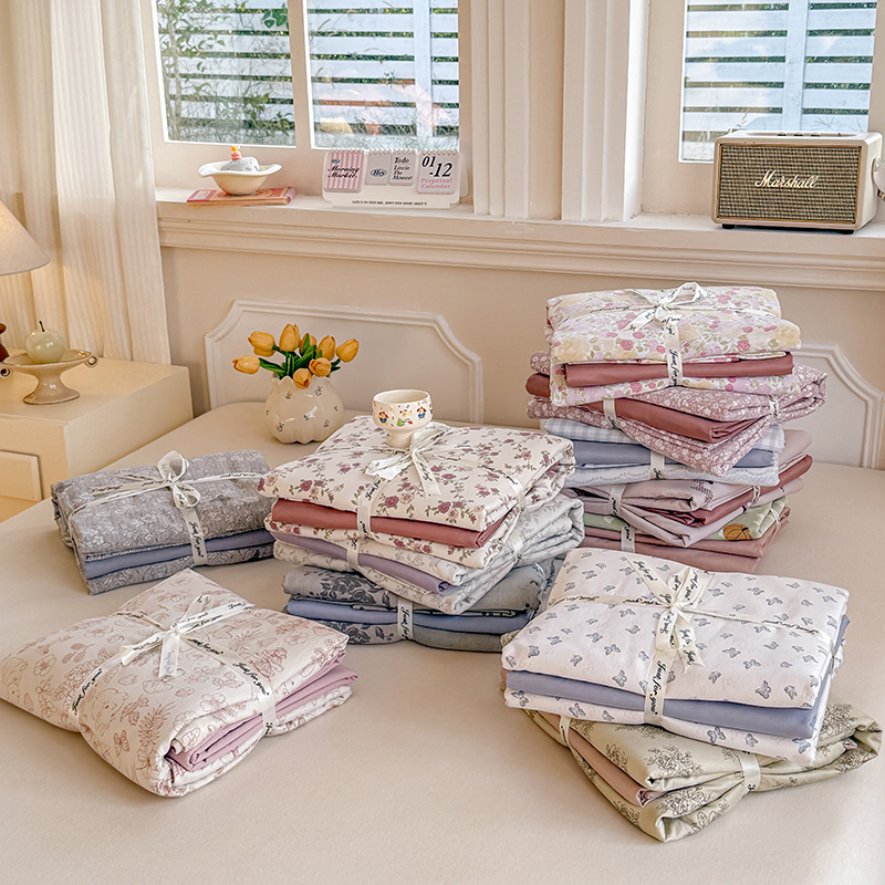 2026新品小清新系列全棉四季款四件套 1.2m床单款三件套 雾飞花