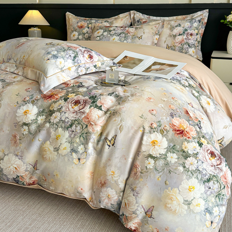 2025新款高克重牛奶绒印花四件套 1.2m床单款三件套 莫奈花园