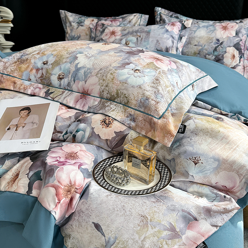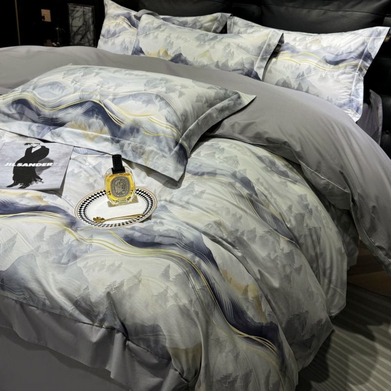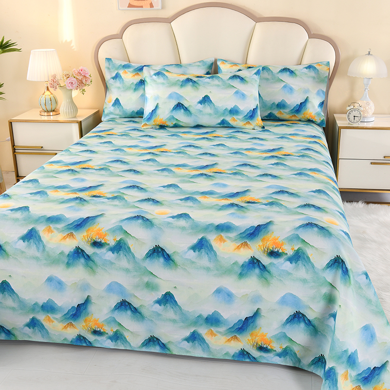2025新款60支全棉贡缎数码印花四件套 1.8m床单款四件套 小雾山雨-绿