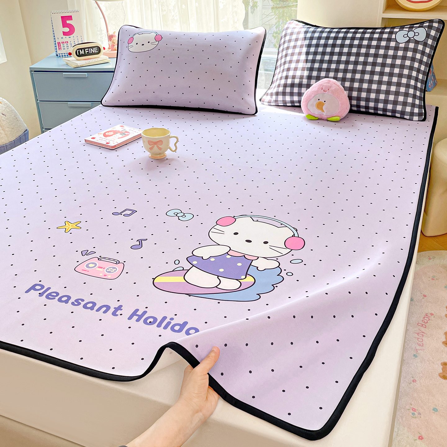 2026新款A类乙纶全PE满版卡通豆豆凉感值0.23凉感软席 90*200cm两件套 床席款-彩虹小马-淡粉