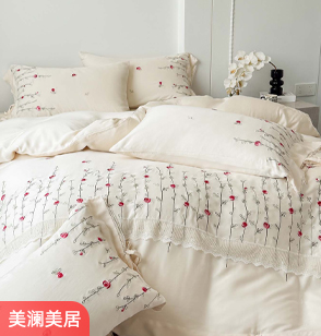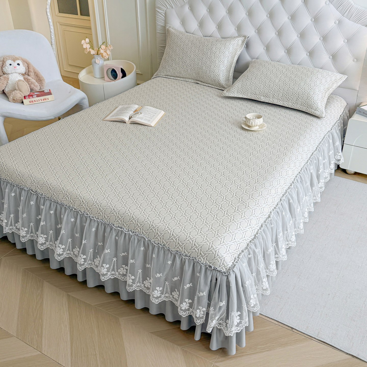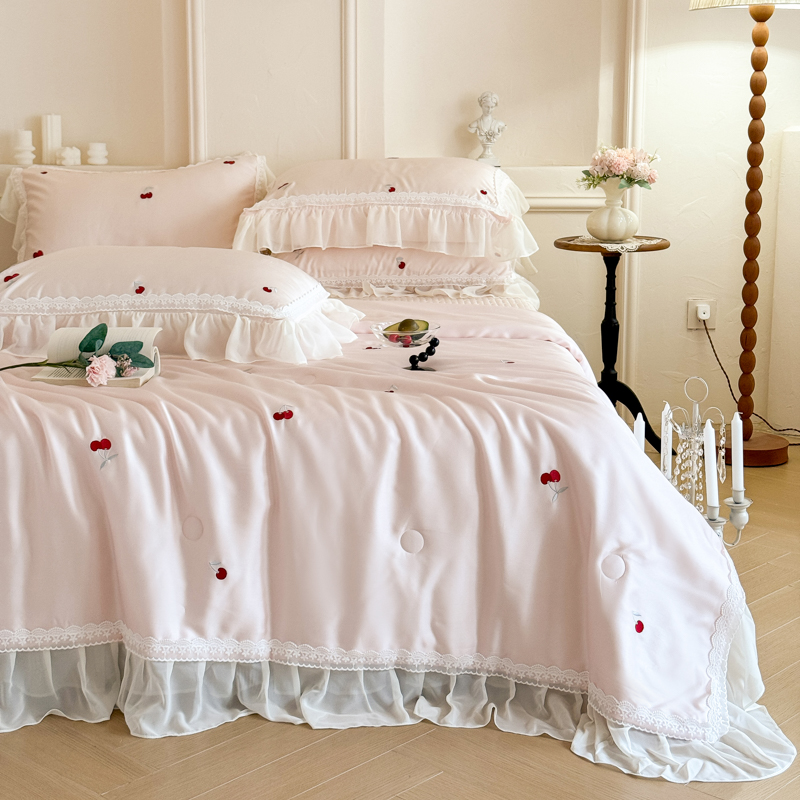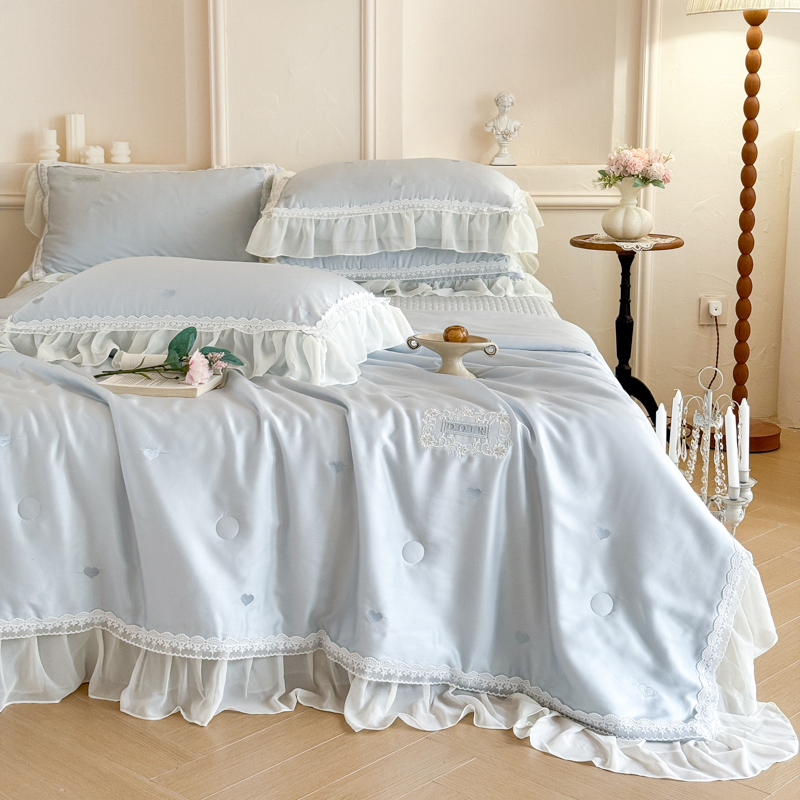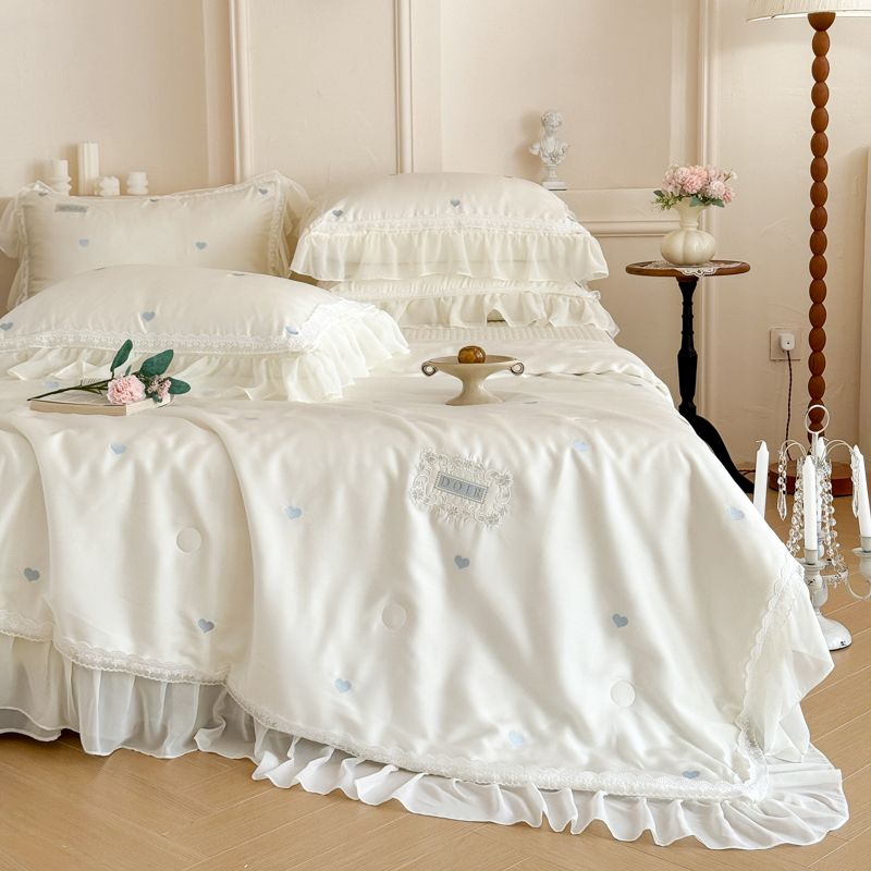 韩版花边刺绣水洗天丝法式床盖床裙款夏被四件套