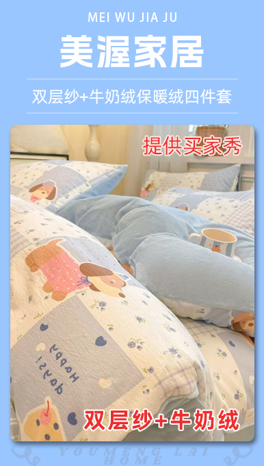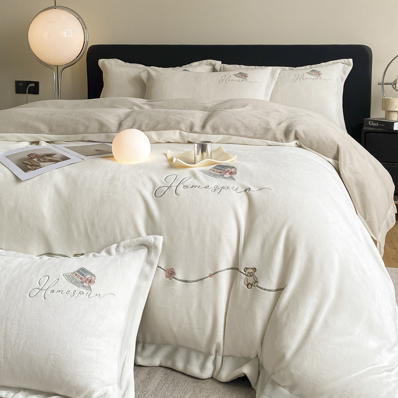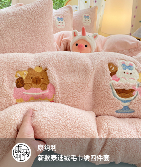 A类高克重加厚保暖牛奶绒毛巾绣卡通四件套