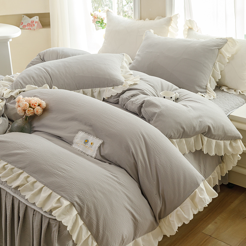 2025新款全棉133*72纯棉小清新花边床裙花边四件套 1.8m床裙四件套被套200x230 妃子笑