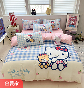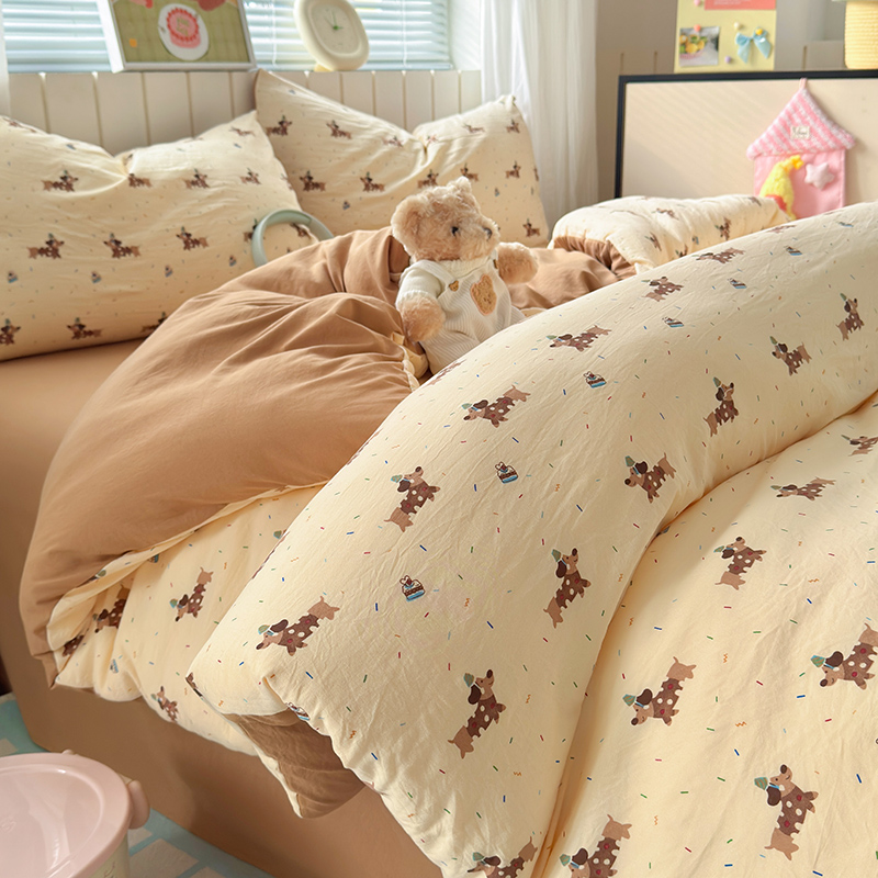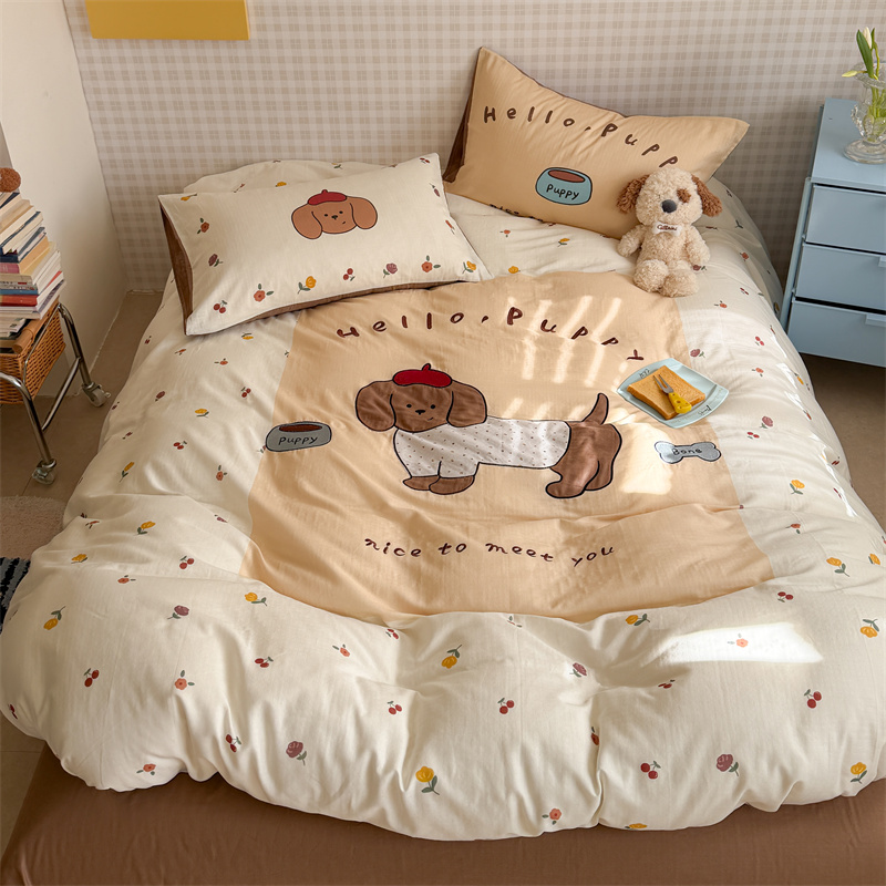 2026新款A类彩竺棉印花四件套 1.2m床单三件套被套150*200 小狗团