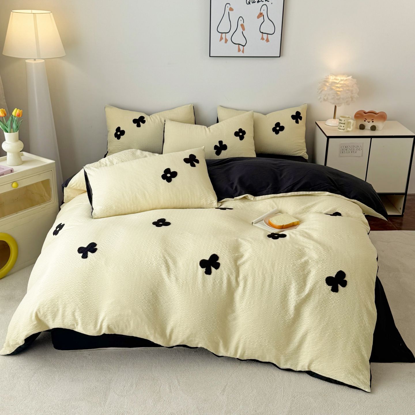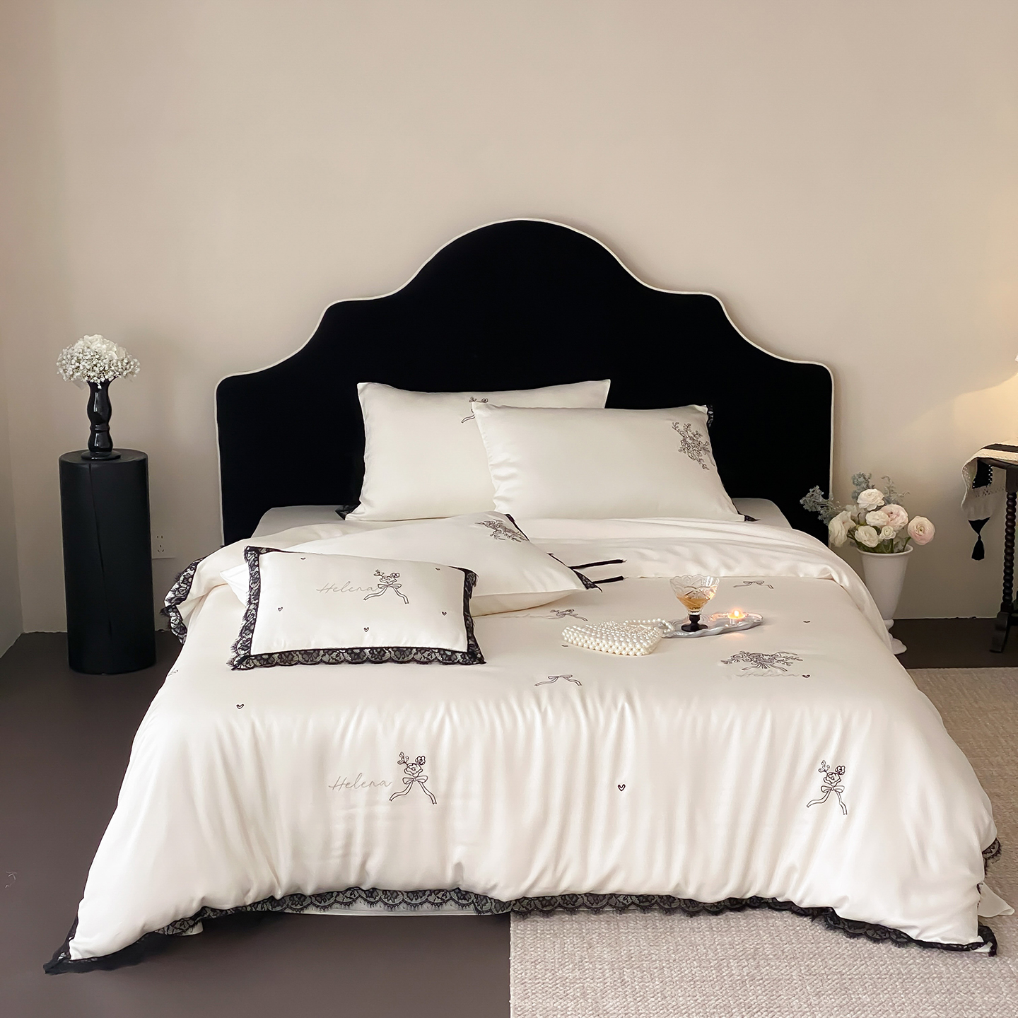 提花剪花贝壳边四件套-甜心奶泡