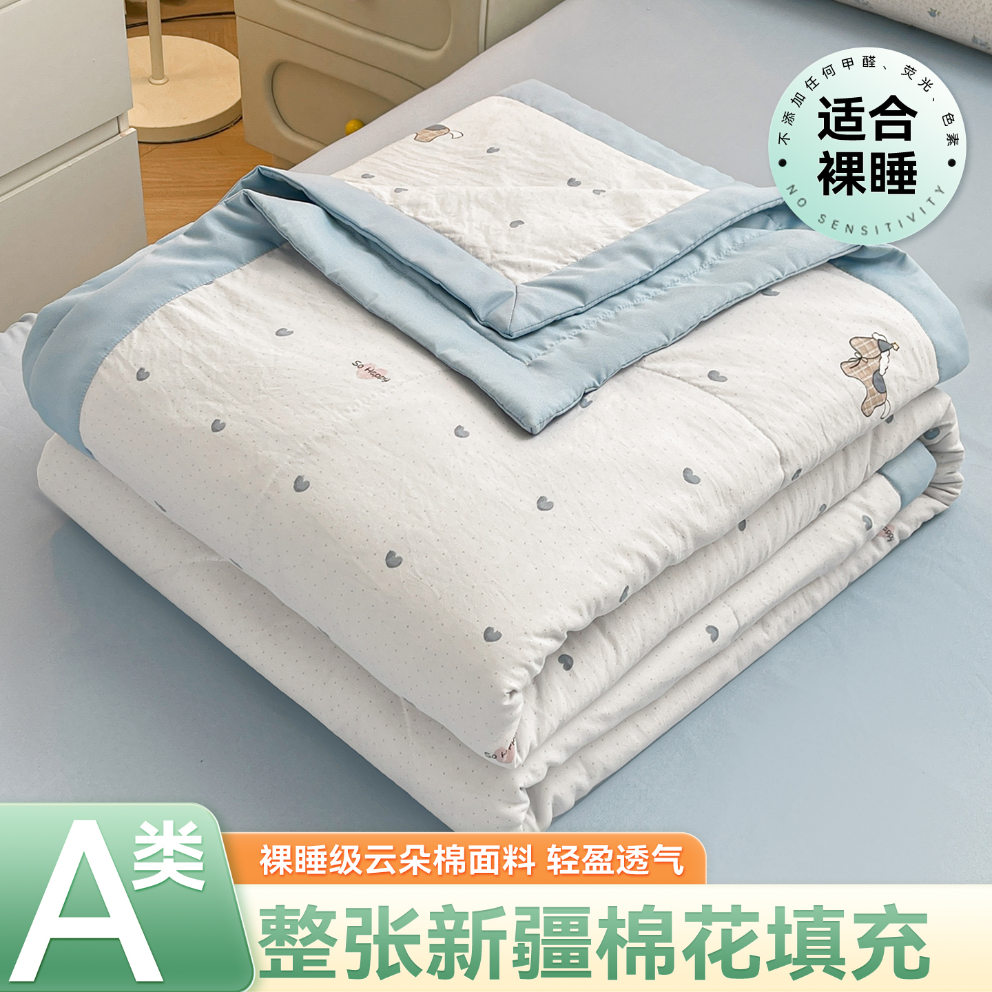 全棉双层纱蚕蛹蛋白抗菌夏被