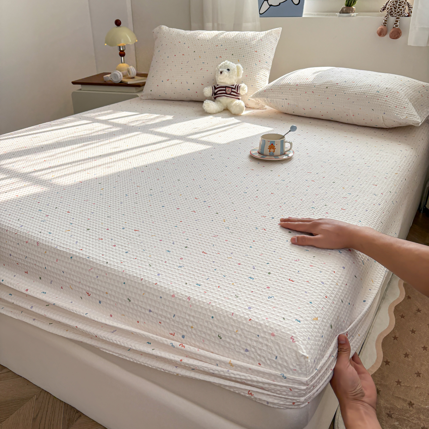 母婴级原棉大豆纤维抗菌夹棉床笠