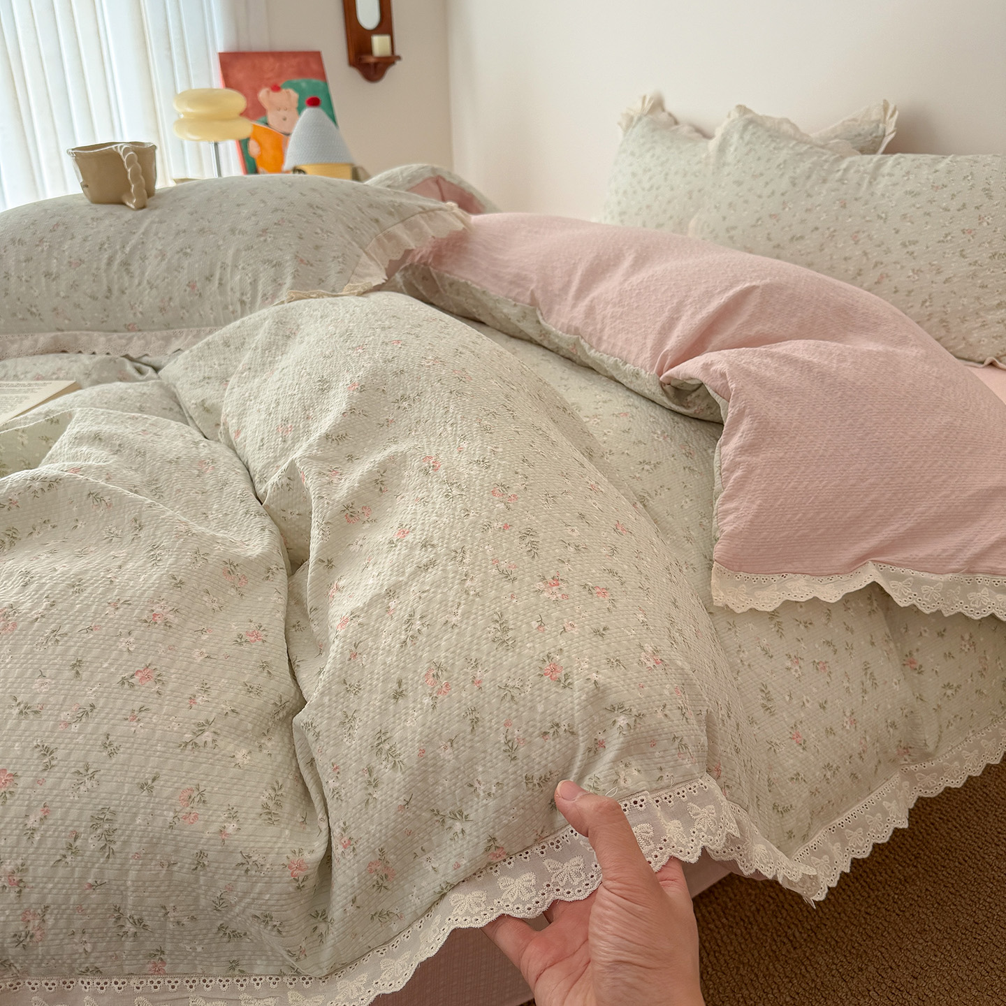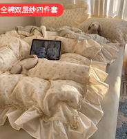 皱皱纱韩系碎花法式花边四件套