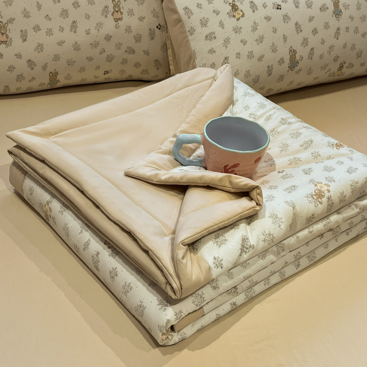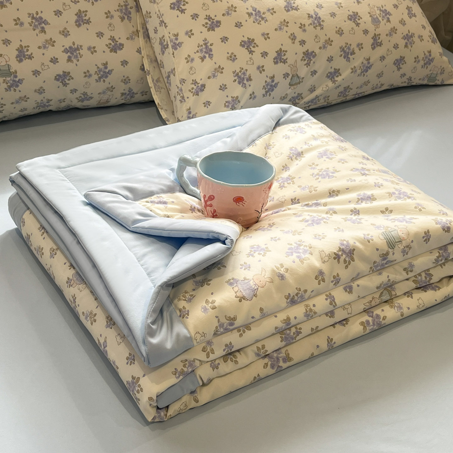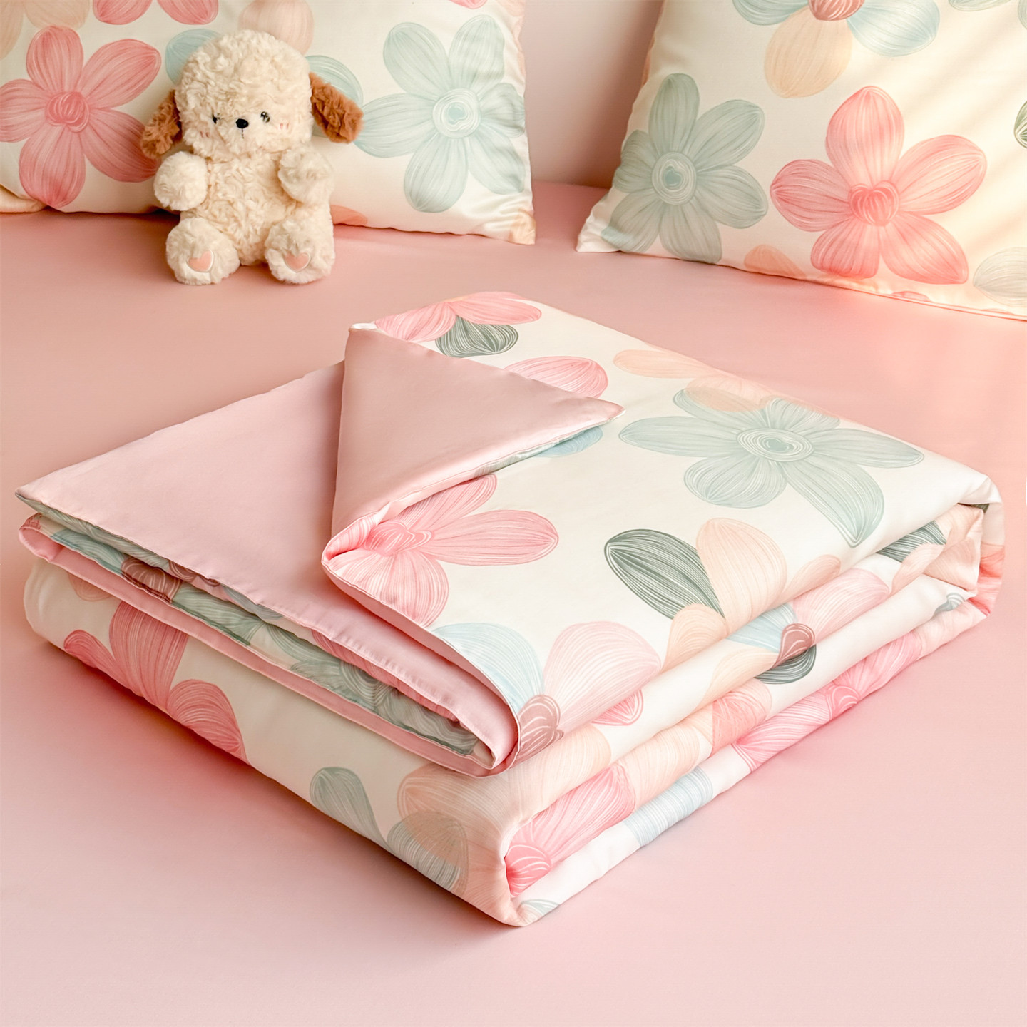 2026新款水洗冰丝数码印花夏被-乐淘系列 150*200cm单夏被 粉色花花-奶油粉