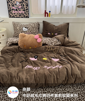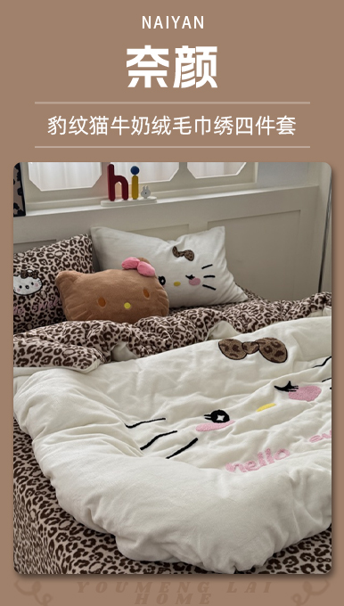 2025新款高克重牛奶绒印花四件套 1.2m床单款三件套 豹纹喵