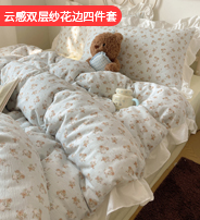 2026新款韩系博主风花边款小碎花A类全棉双层纱四件套