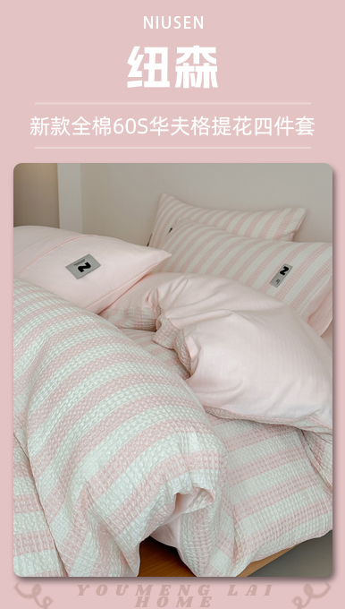 2026新款60长绒棉水洗立体提花四件套 1.2床单三件套-被套150*200 花间梦-粉