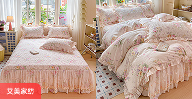 2026新款全棉印花夹棉床裙款四件套单被套 枕套一对 烟笼蔷薇