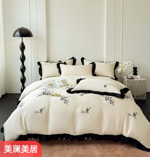 2025新款全棉133*72纯棉小清新花边床裙花边四件套 1.5m床裙四件套被套200x230 妃子笑