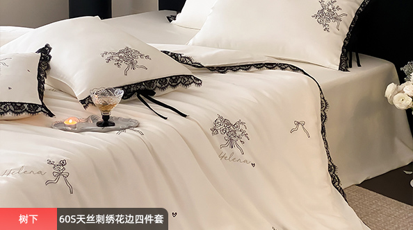 天丝提花宽边水洗真丝四件套