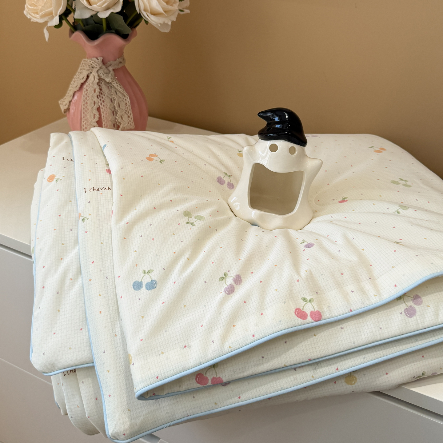 2026新款水洗冰丝刺绣夏被-三只小马系列 150*200cm单夏被 三只小马-奶昔白+奶油粉