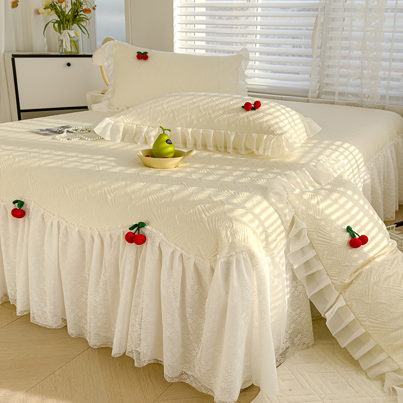 2025新款全棉133*72纯棉小清新花边床裙花边四件套 1.5m床裙四件套被套200x230 妃子笑