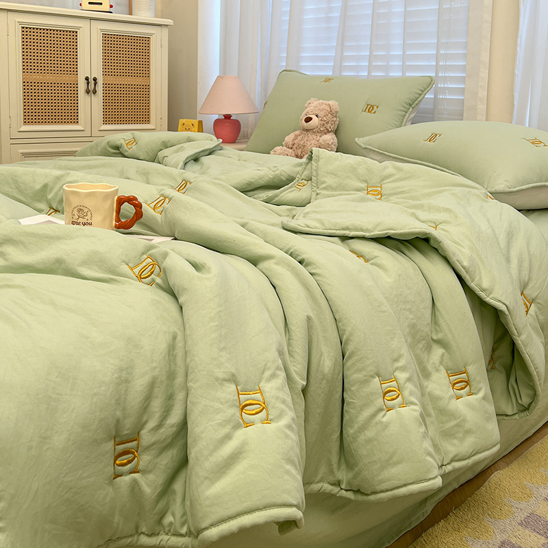 2025新款绣花款纯棉生态磨毛四件套 1.5m床单款四件套 卡诺其-艾草绿