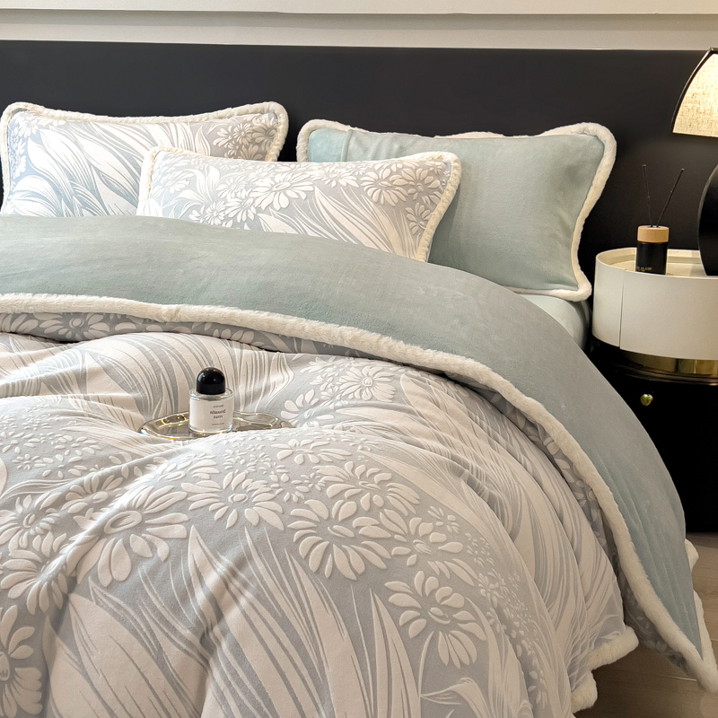2025新款法式立体雕花绒-兔毛包边四件套 1.2m床单款三件套 冬日恋歌-蓝