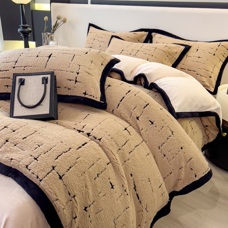 2025新款立体菠萝格印花保暖四件套 1.2m床单款三件套 英伦横条