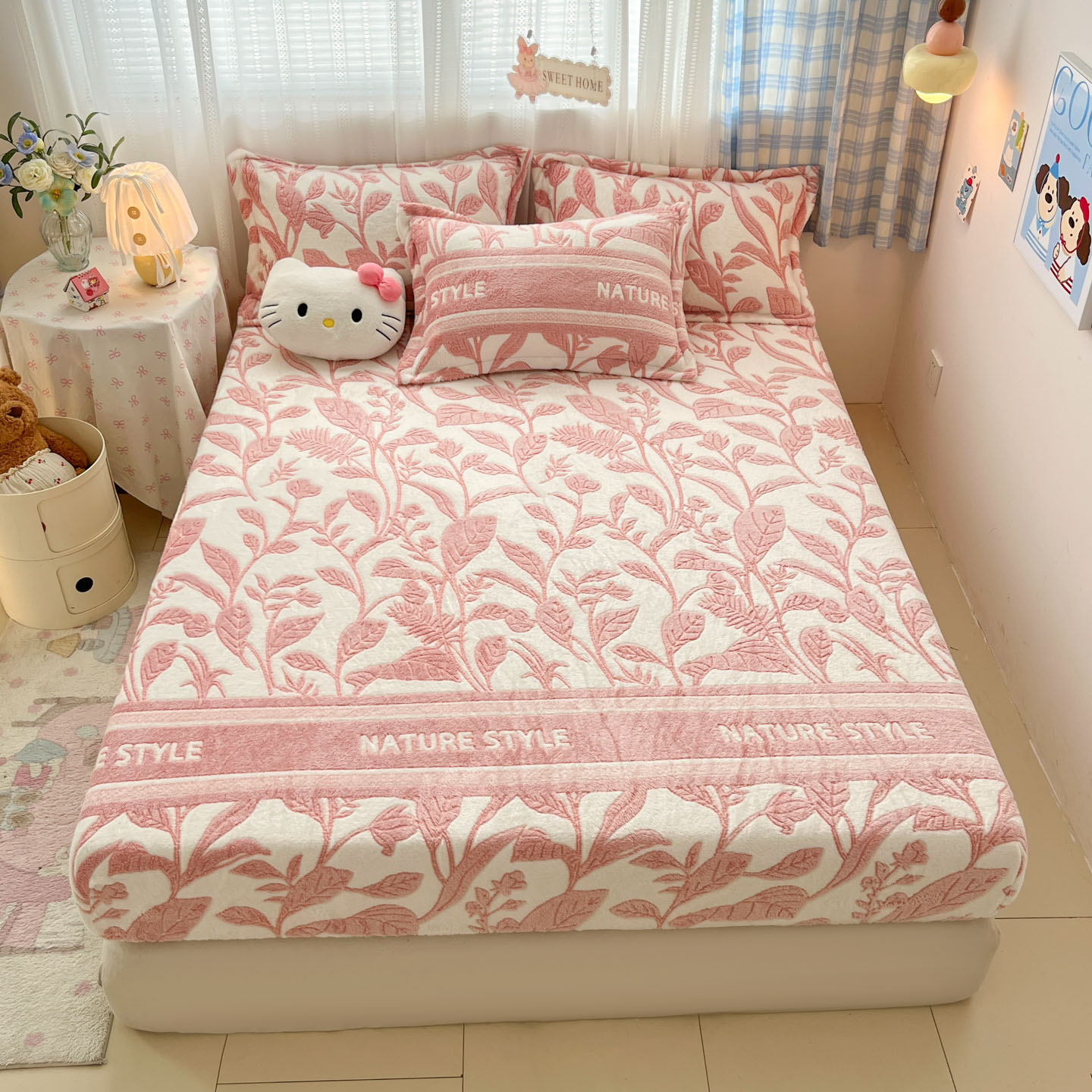 2025新款立体菠萝格印花保暖四件套 1.2m床单款三件套 自由粉