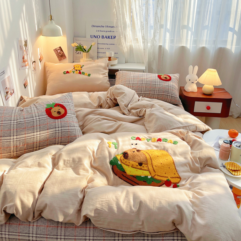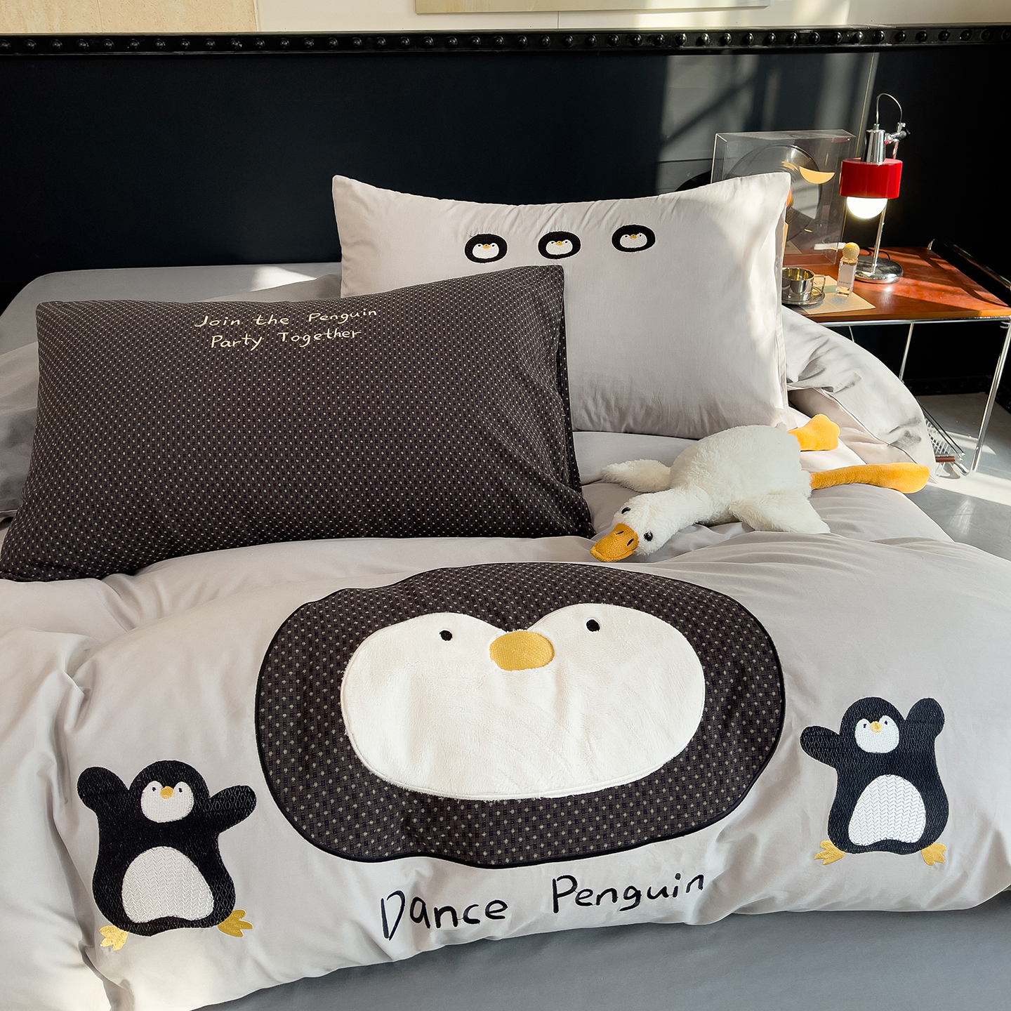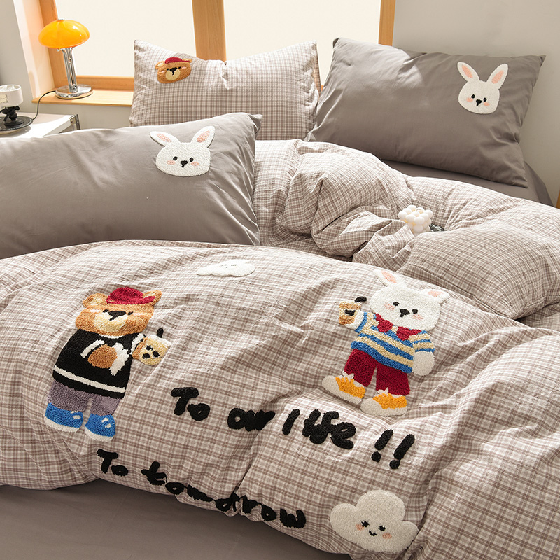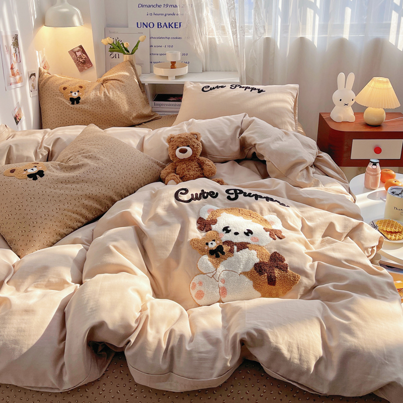 - 2026新款A类全棉40支水洗棉卡通贴布绣刺绣纯棉四件套-卡哇系列 卡哇-可可