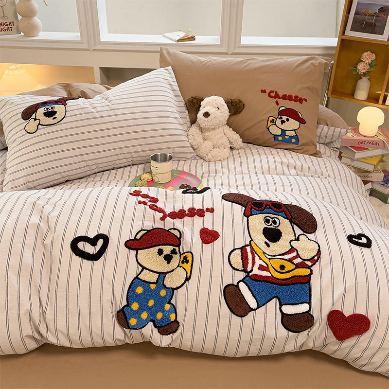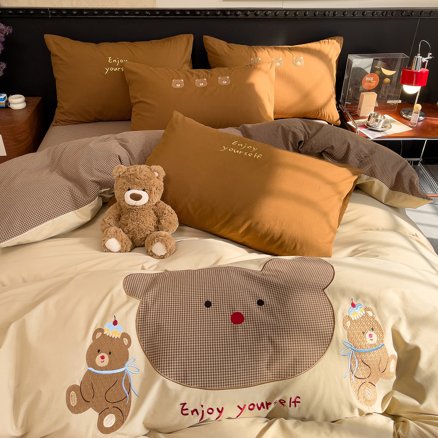 - 2026新款A类棉麻刺绣卡通贝壳边四件套-布鲁系列 布鲁-小熊