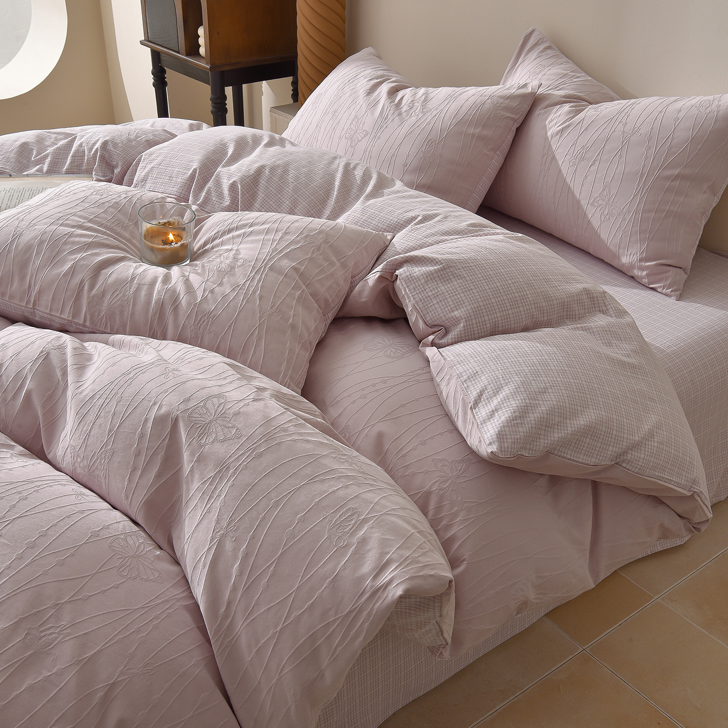 - 2026新款A类60支水洗棉立体浮雕提花全棉四件套-幻蝶系列 幻蝶-浪漫粉