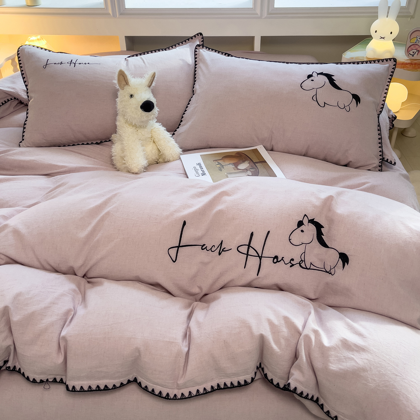 - 2026新款A类棉麻刺绣卡通贝壳边四件套-布鲁系列 布鲁-小马