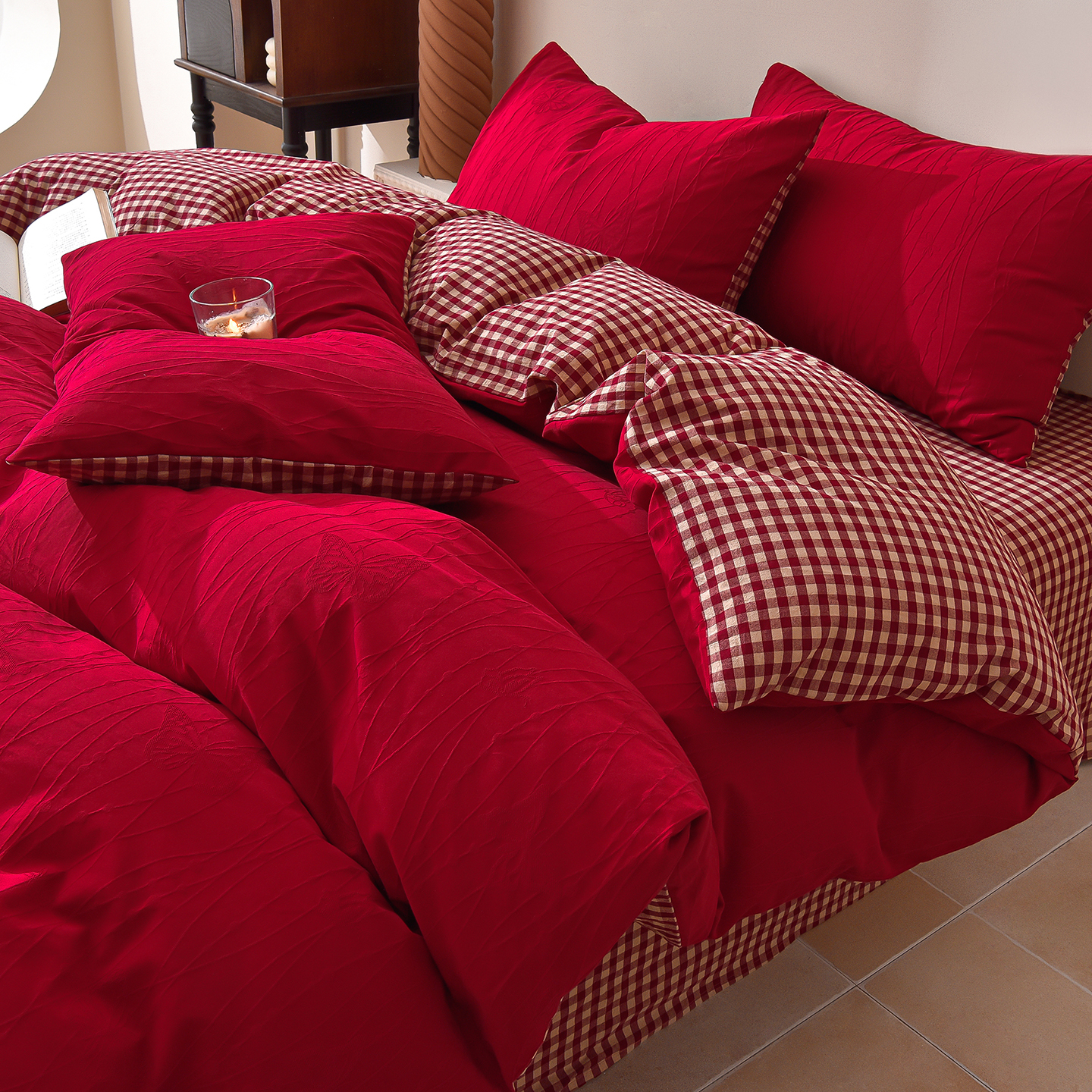 - 2026新款A类60支水洗棉立体浮雕提花全棉四件套-幻蝶系列 幻蝶-中国红