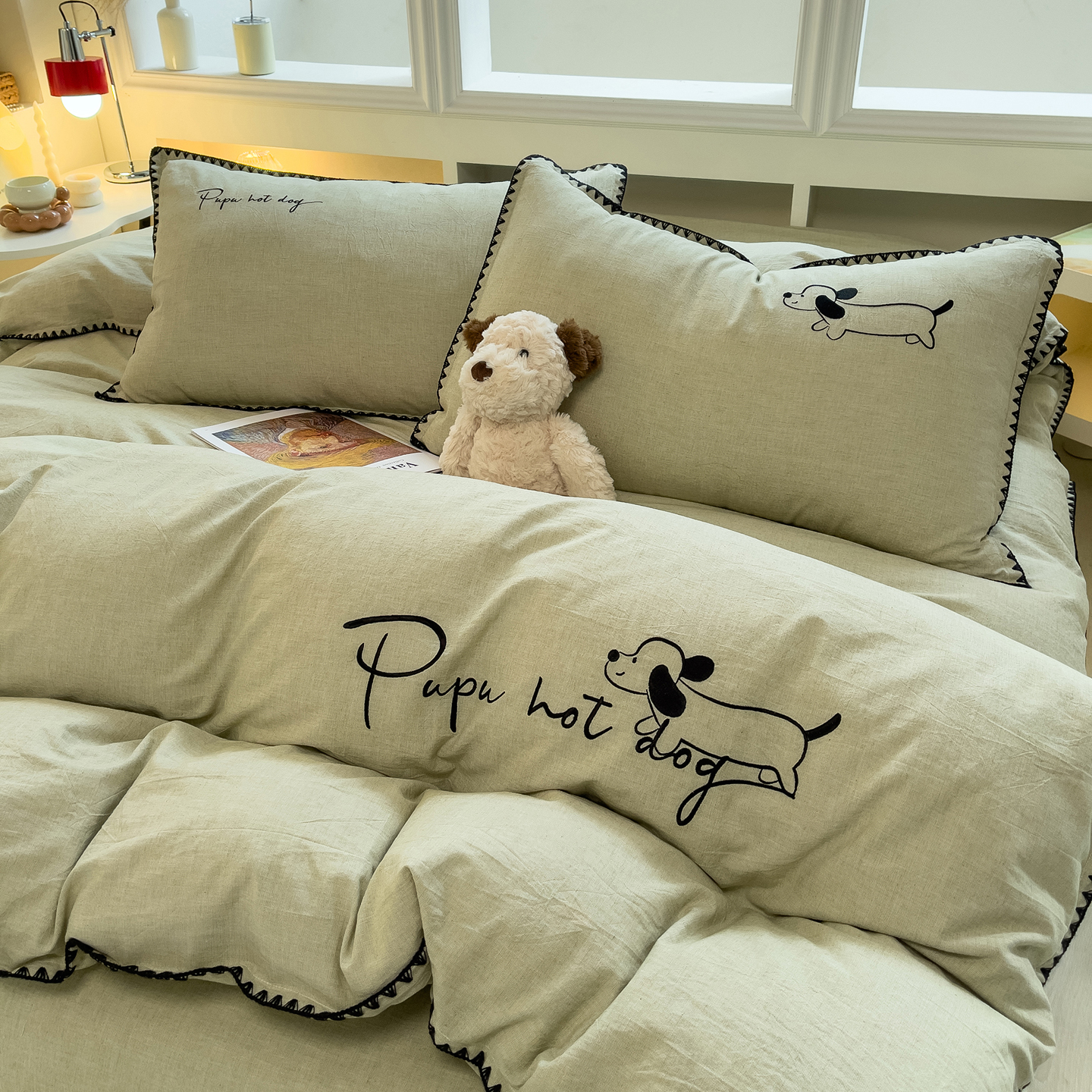 - 2026新款A类棉麻刺绣卡通贝壳边四件套-布鲁系列 布鲁-小狗