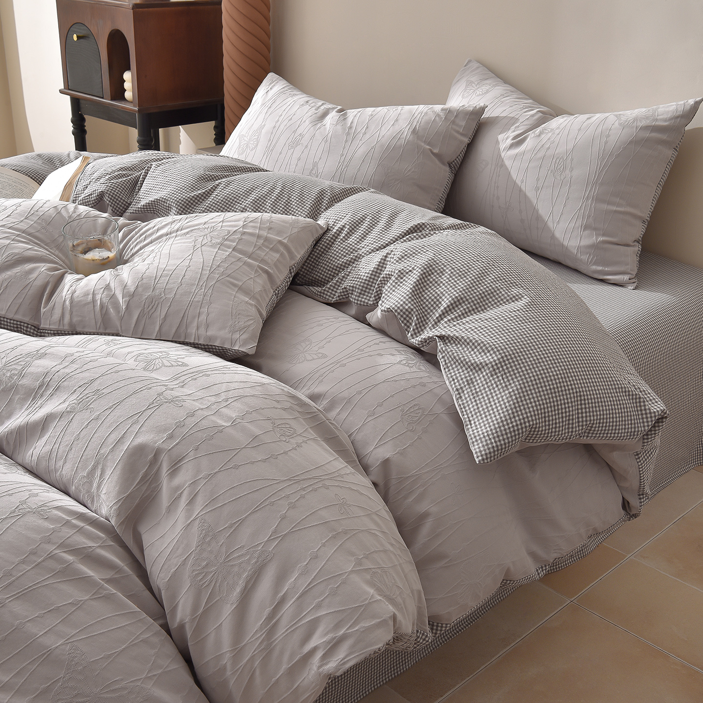 - 2026新款A类60支水洗棉立体浮雕提花全棉四件套-幻蝶系列 幻蝶-星空灰