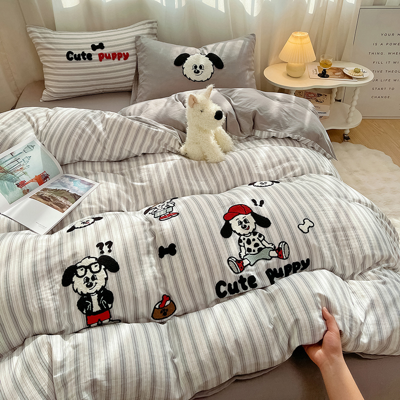 - 2026新款A类全棉40支水洗棉卡通贴布绣刺绣纯棉四件套-卡哇系列 卡哇-汪星