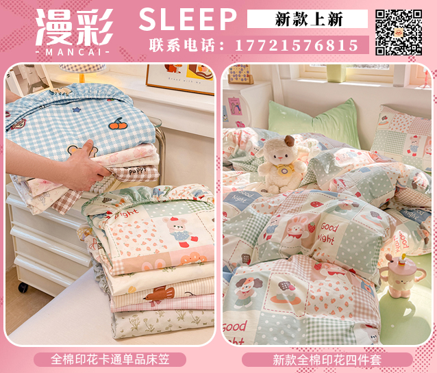 2026新款A类彩竺棉印花四件套 1.2m床单三件套被套150*200 星星仔