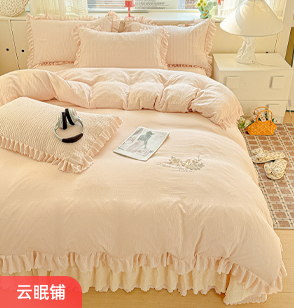 2025新款立体菠萝格印花保暖四件套 1.2m床单款三件套 自由粉