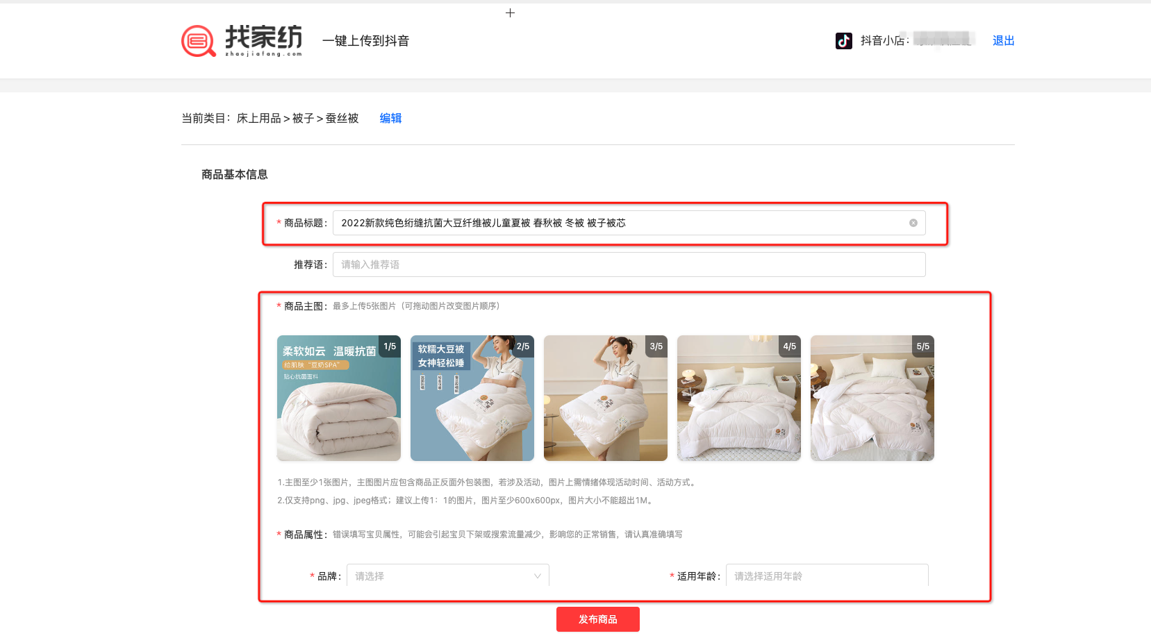 7进入商品上传页面,填写商品类目属性(商品属性会自动匹配,如果未匹配,需要手动填写)