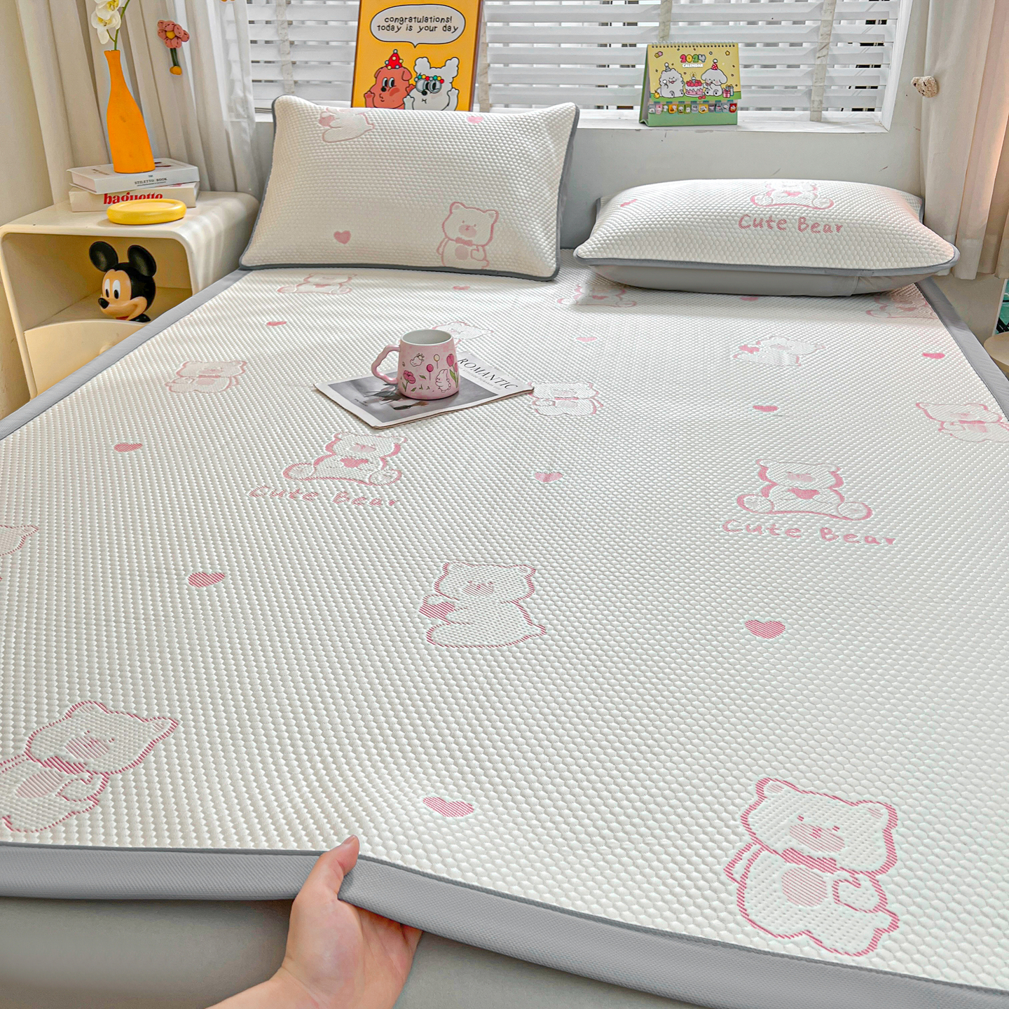 - PE凉感冰豆豆凉席贴布绣床席款-八宝熊-绑带款【场景二】